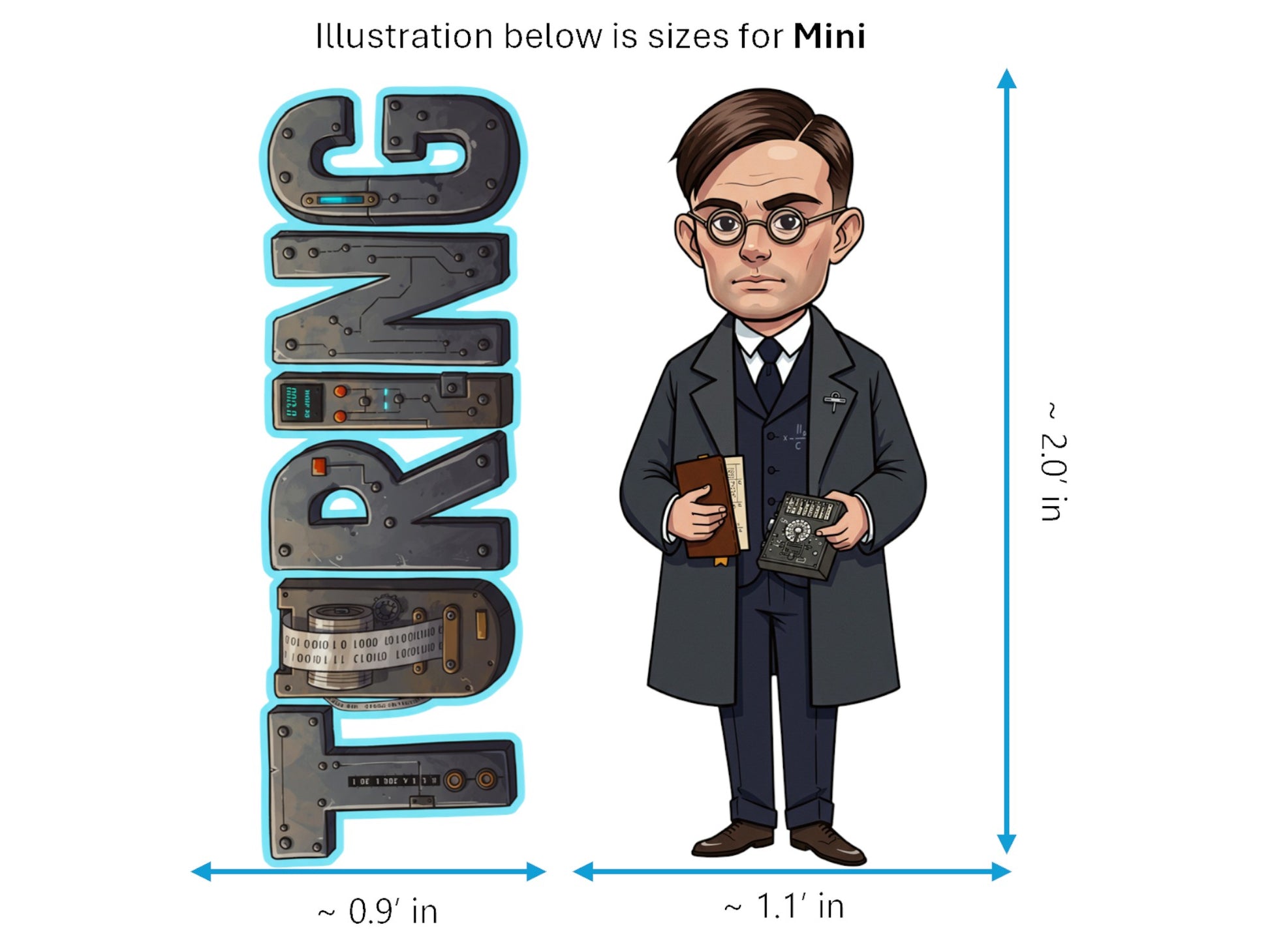 Each sticker from the Scikins™ series by TinkerDex offers a modern, collectible twist on pioneering scientific minds, appealing to science enthusiasts, computer history buffs, mathematicians, programmers, WWII history aficionados, and admirers of intellectual giants. To create these unique characters, I use AI tools to help develop the initial concepts. From there, I personally refine the artwork and then handle all of the printing, cutting, and packaging right here in my US-based workshop to ensure the highest quality.