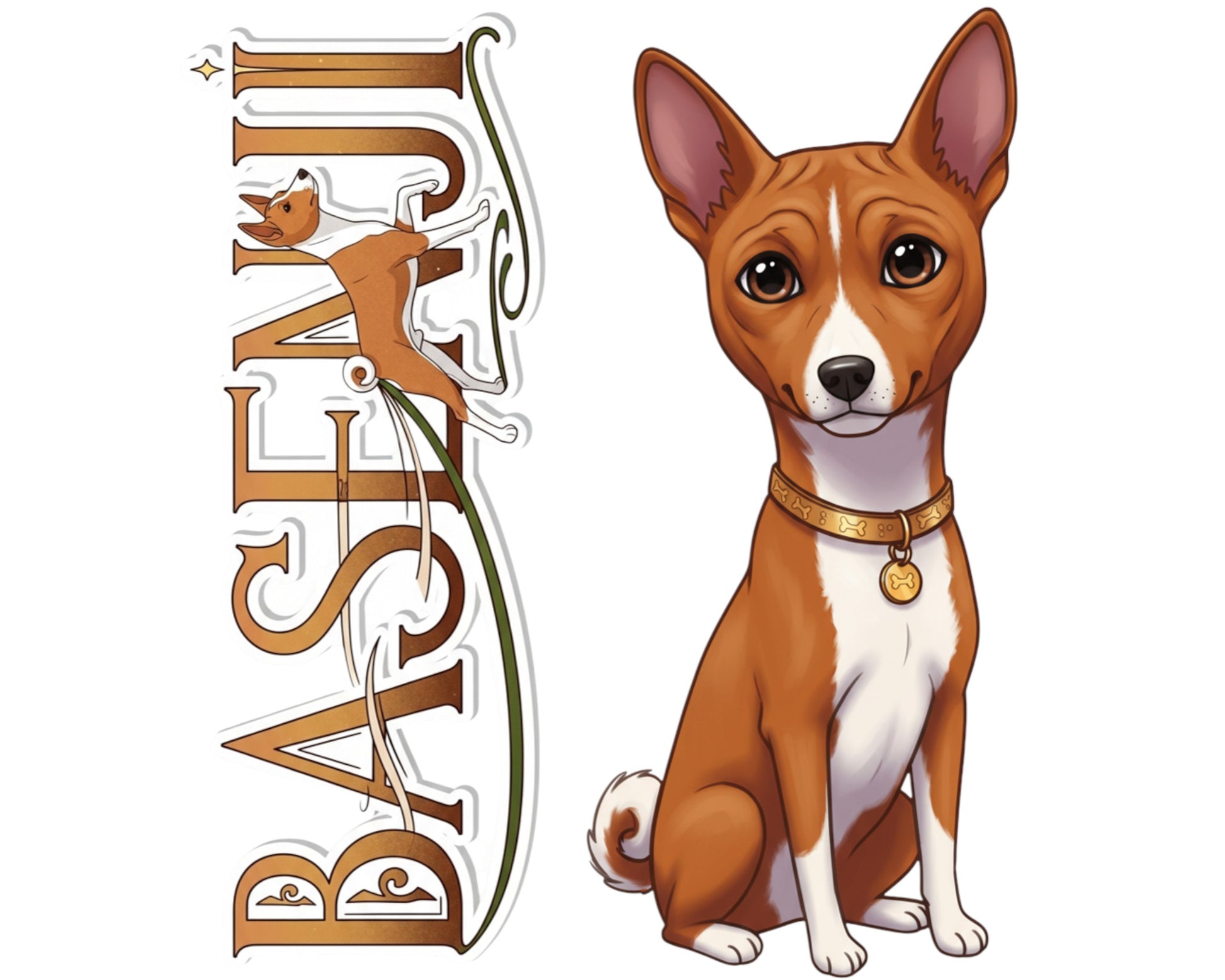 Celebrate a truly unique breed with the intelligent Basenji the Barkless Dog design from the exclusive Pawkins™ collection by TinkerDex. Expertly crafted and beautifully stylized, this high-quality item captures the spirit of the Basenji—the ancient hunting dog from Africa, famously known as the 'Barkless Dog' for its unique yodel-like sounds and curious, cat-like nature.