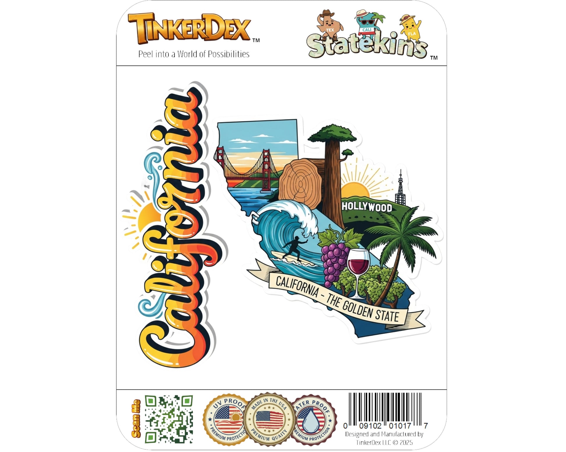 Each design in the Statekins™ series is a unique, collectible celebration of the USA. This California sticker is a fantastic souvenir and a wonderful way to keep your favorite memories of the state close. Proudly designed and manufactured in the USA, every item reflects our commitment to exceptional quality and authentic, heartfelt design.